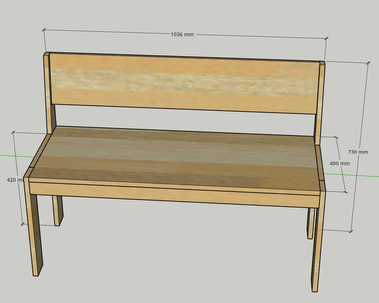 - Pés traseiros - 2 tábuas 70mm X 730mm (marcando 420mm a partir do pé, fiz um corte diagonal na parte superior até a metade das tábuas (35mm))