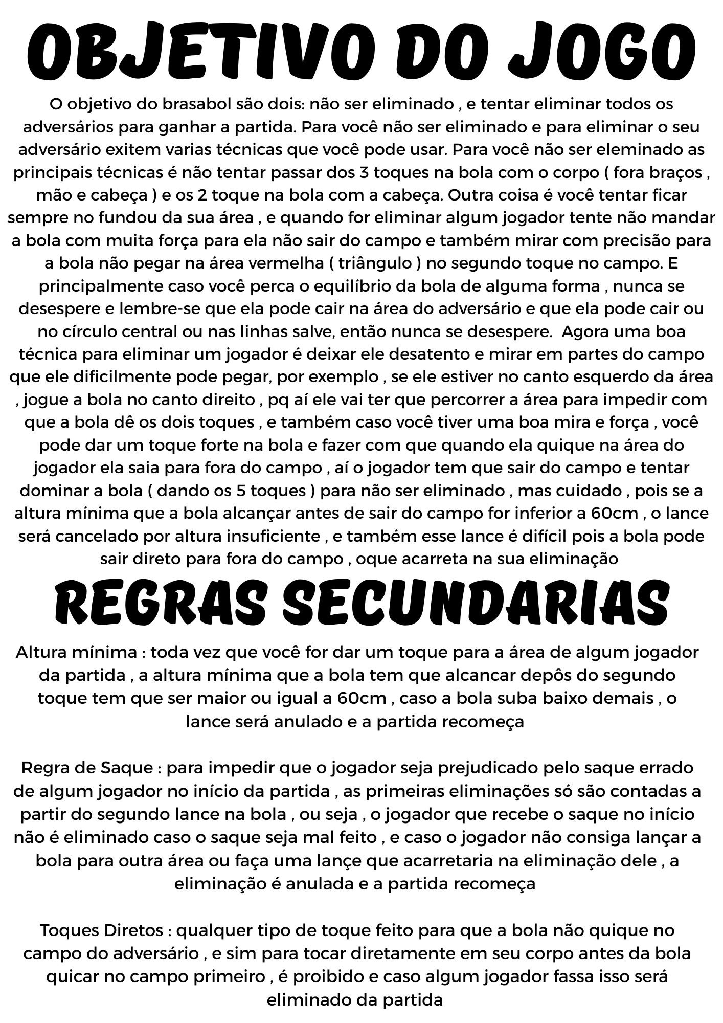 Peço que baixem imagens do projeto , nelas estão todas as regras , objetivos e tudo que você precisa saber para jogar uma partida de brasabol 🇧🇷