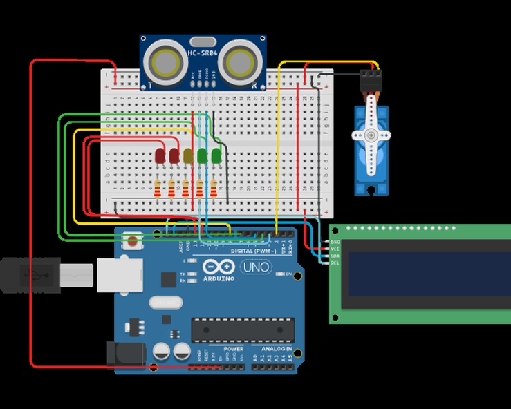 Uma cancela feita no tinkercad, em breve irei fazer na vida real, sou iniciante e estou começando em arduino.