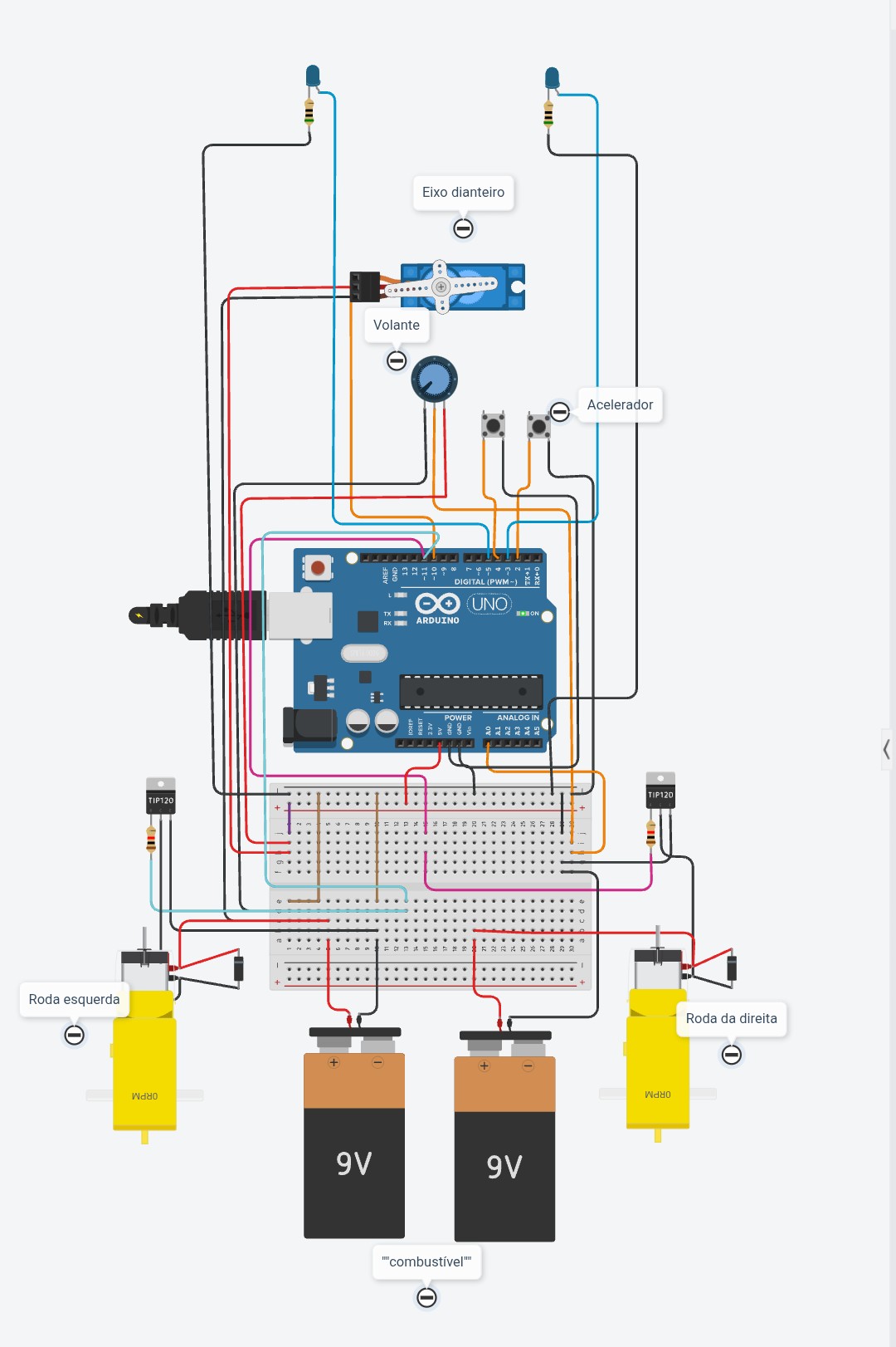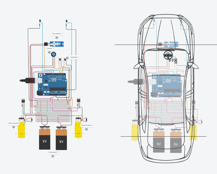 Link para o Tinckercad: https://www.tinkercad.com/things/ctYwI5YEAPi-circuito-de-carrinho-