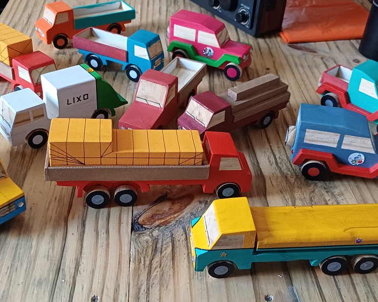 Diversos modelos de carrinhos feito de madeira artesanalmente