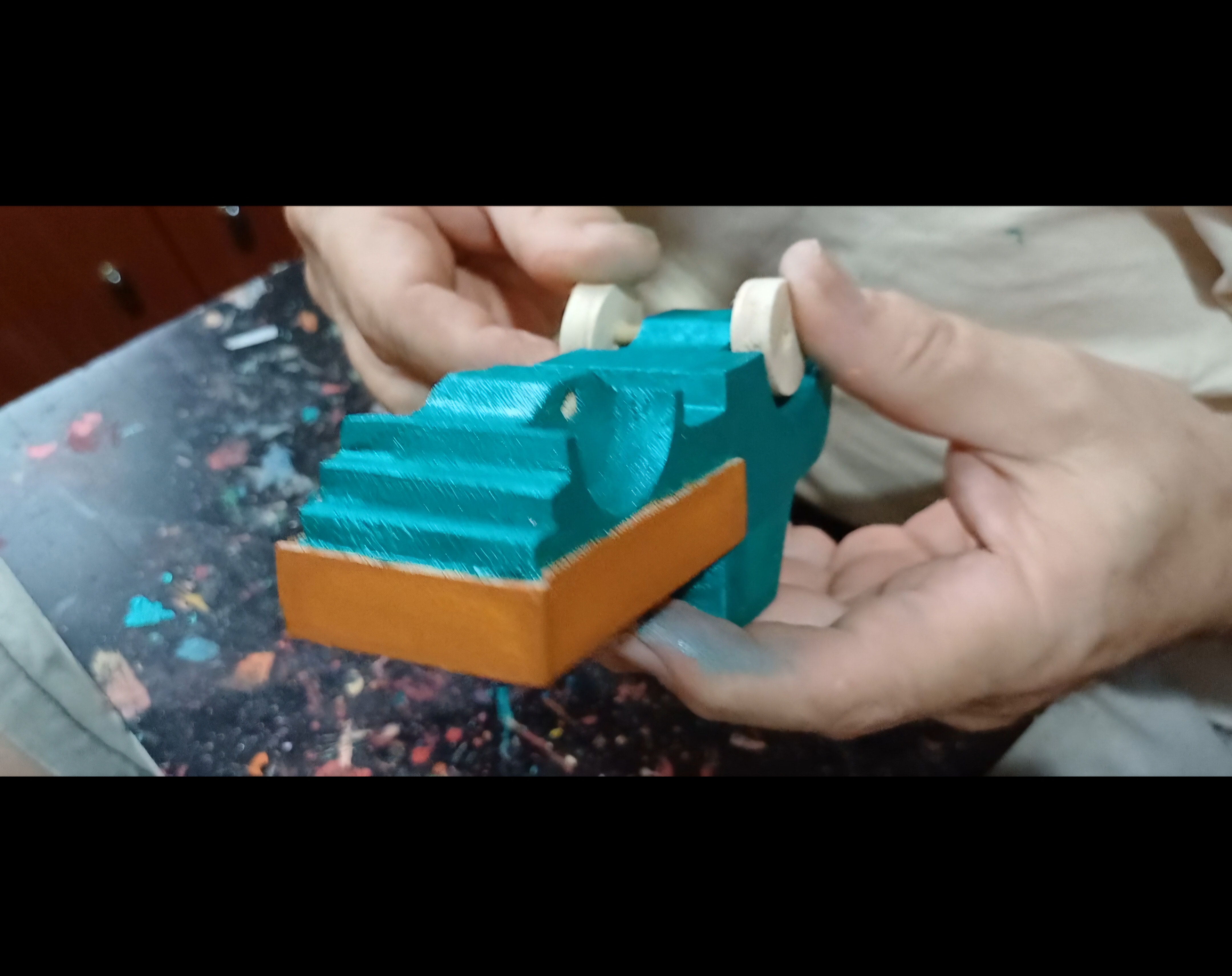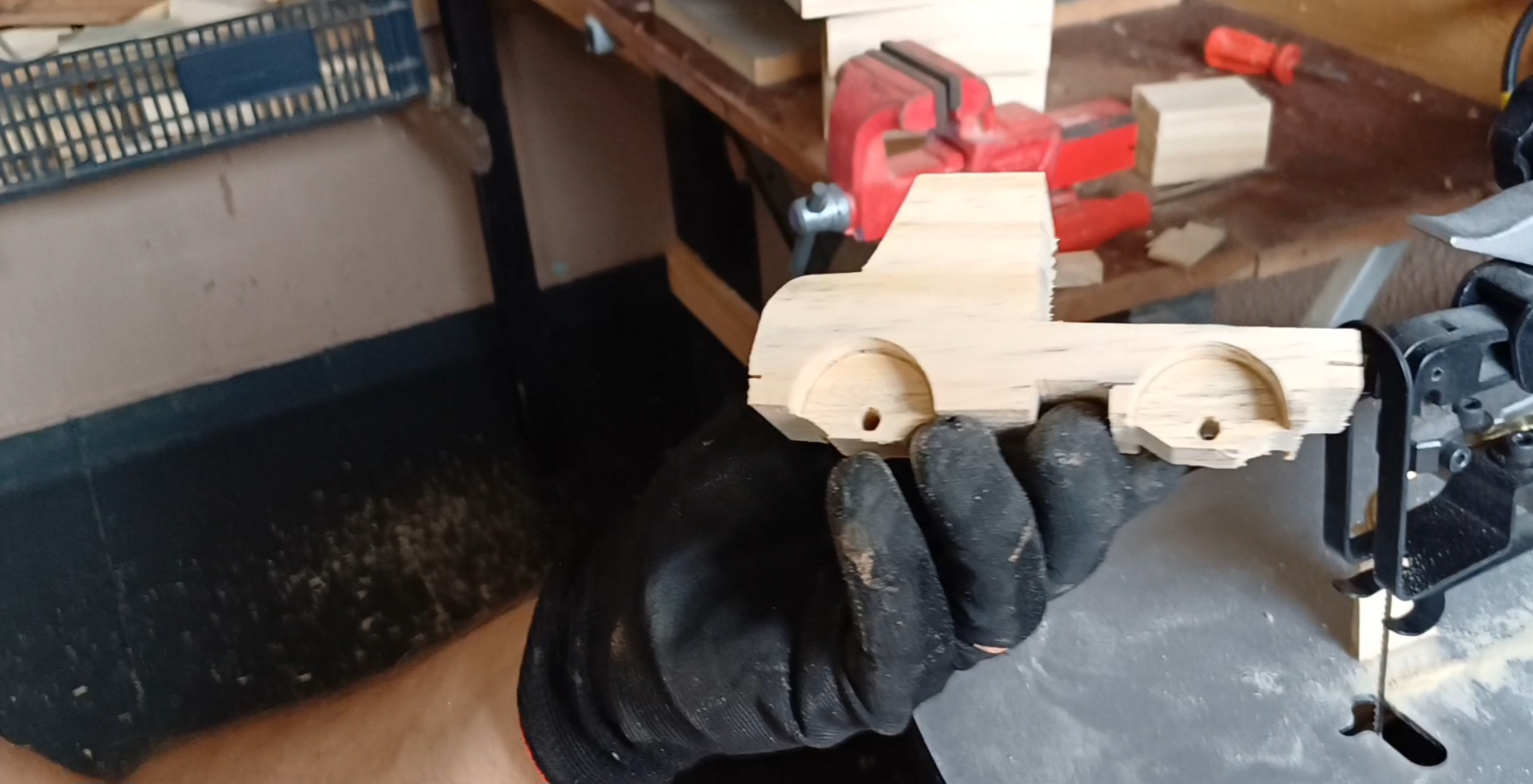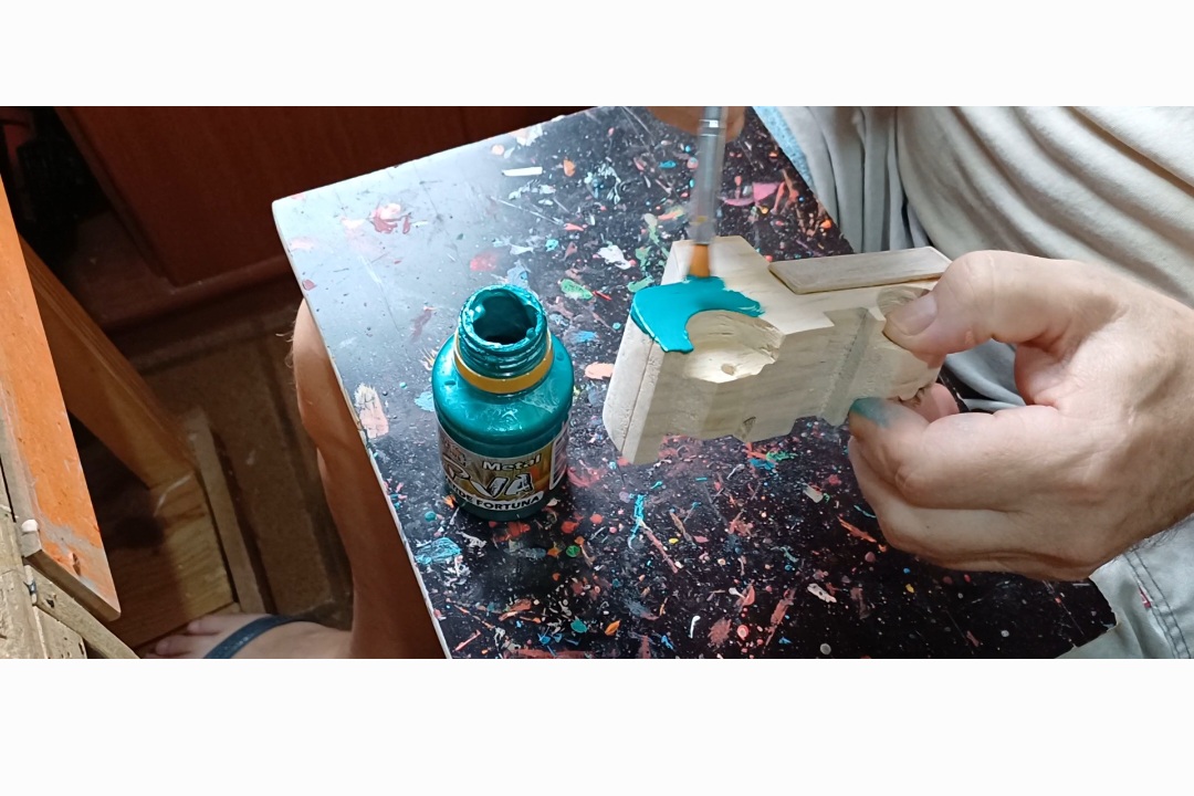 Desenhando, cortando, pintando as peças. Colocando as rodinhas e acabamentos.