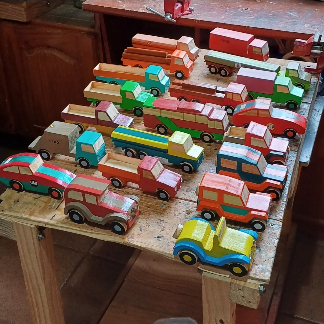 Diversos modelos de carrinhos feito de madeira artesanalmente