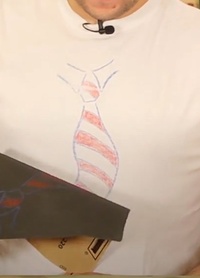 - Estique a camiseta e coloque o papelão por dentro dela, separando a frente e as costas da camiseta. Ele servirá para que o giz de cera não atravesse para o outro lado e manche a camiseta.