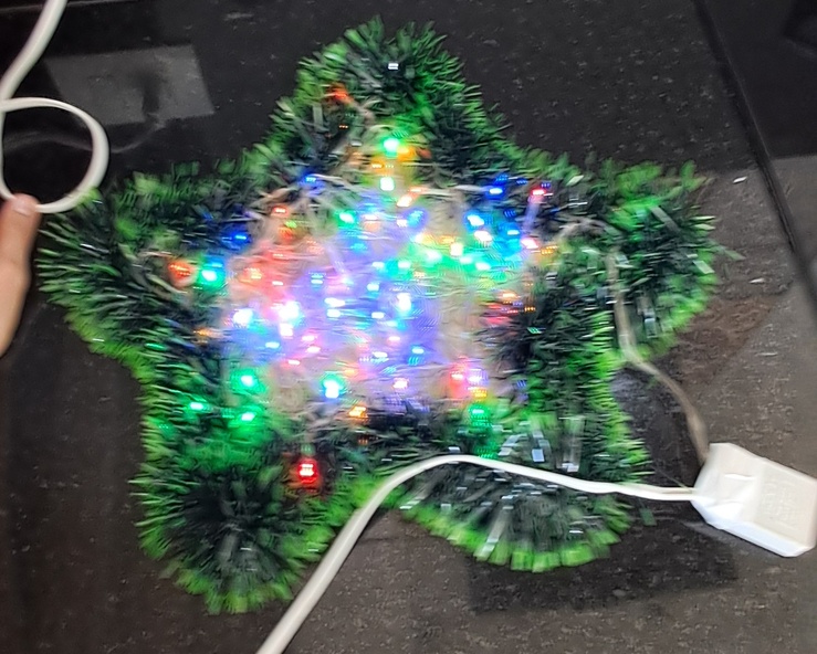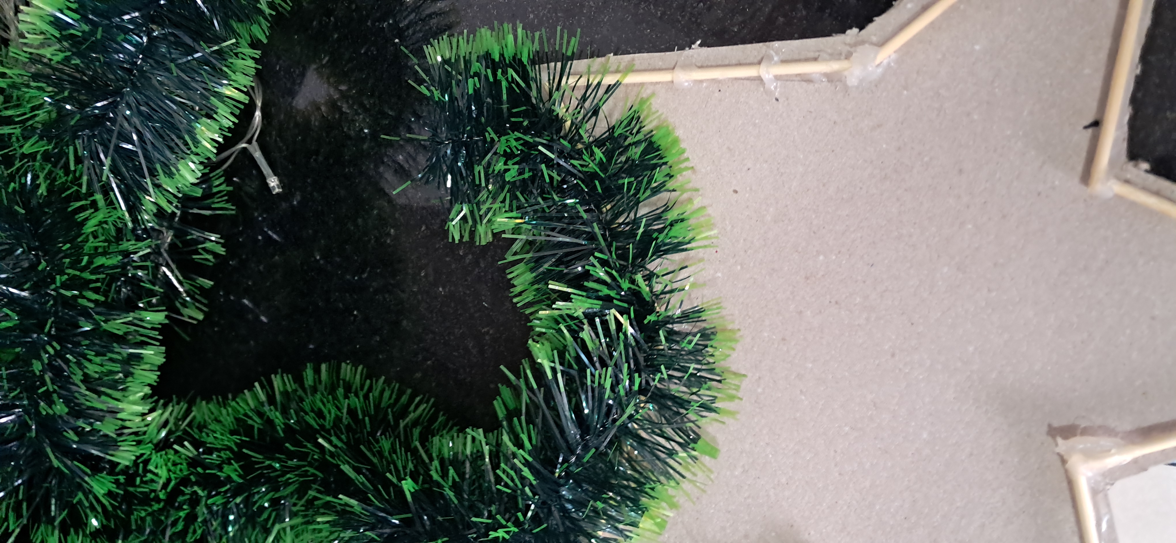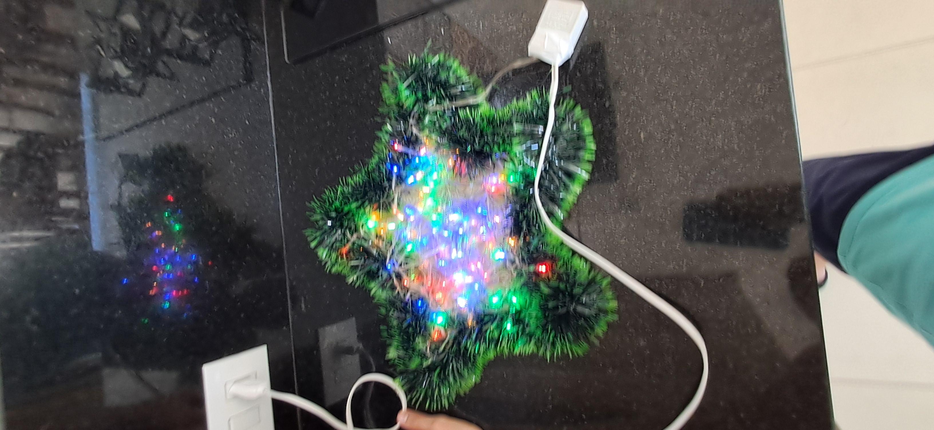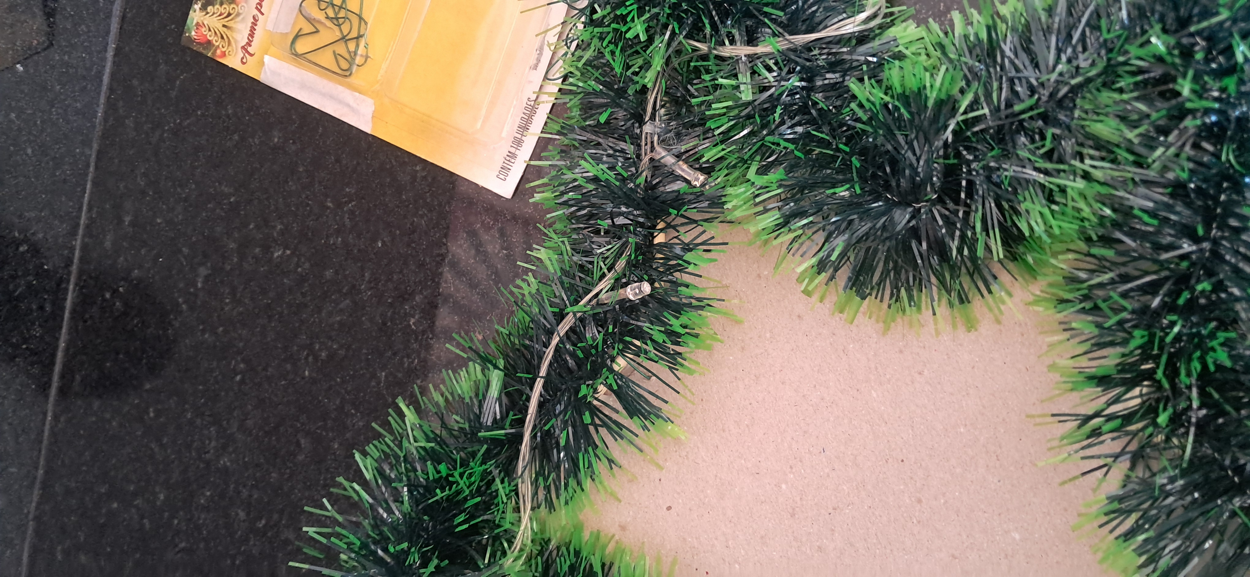 2- cole o pisca pisca pisca embaixo do festão com cola quente.
