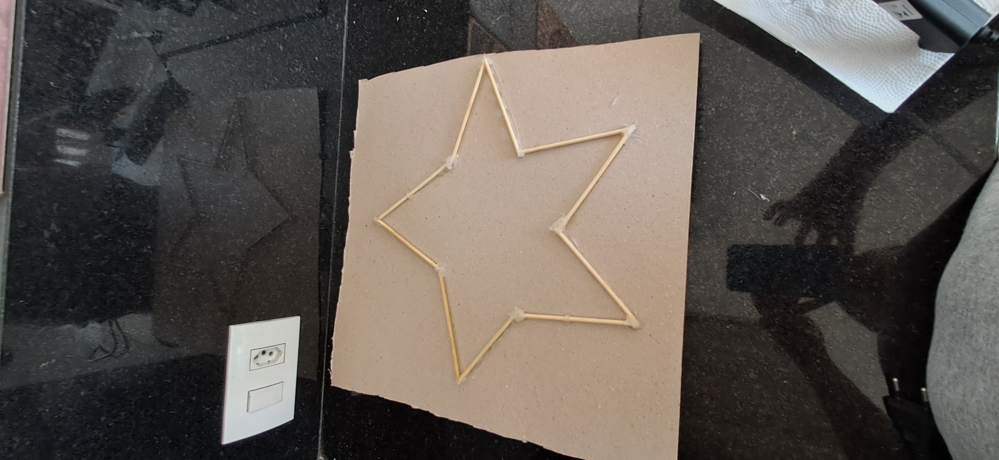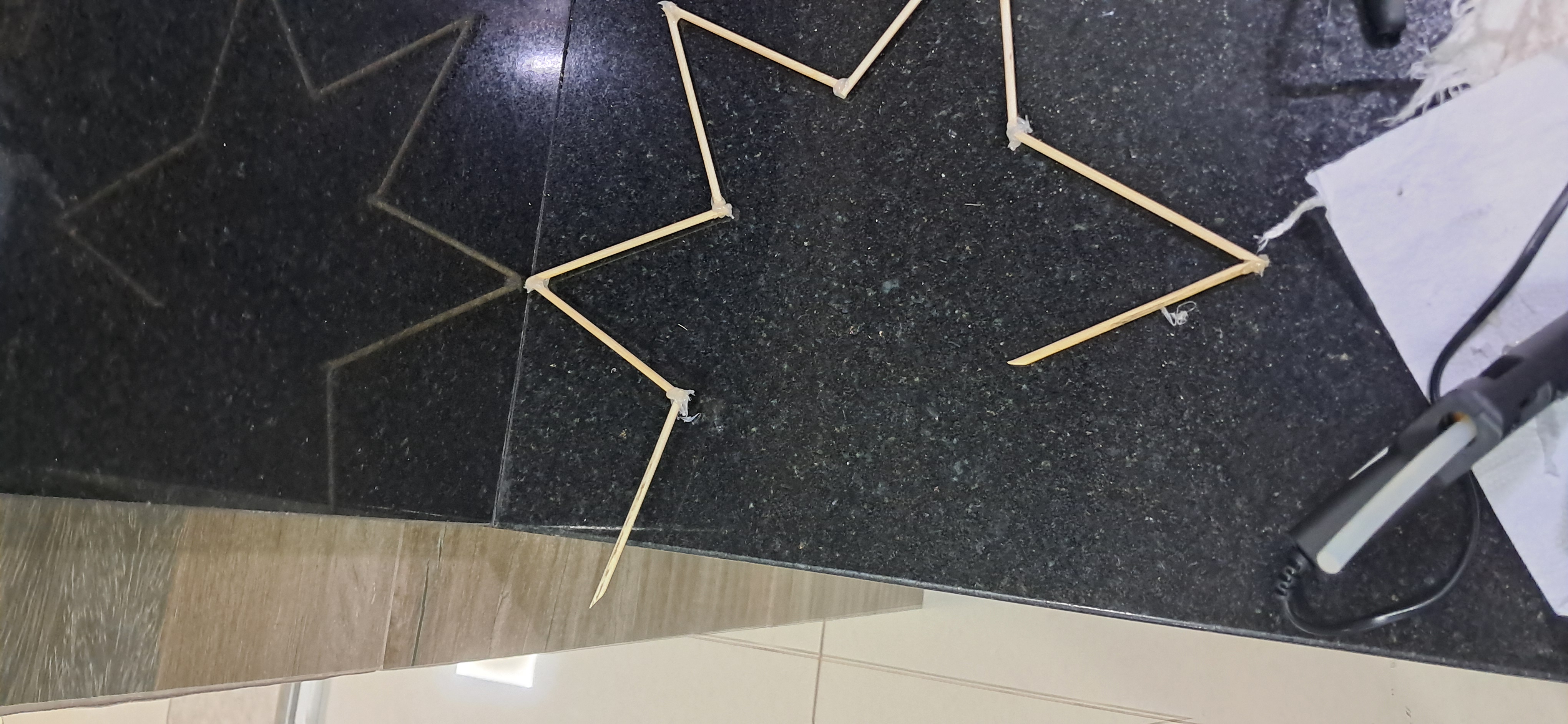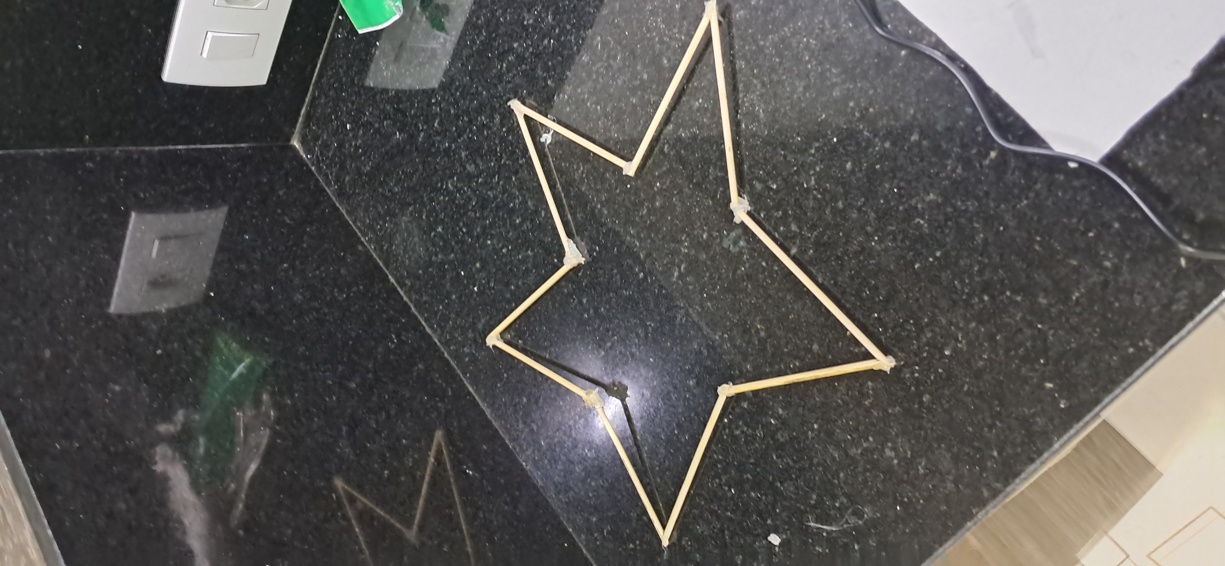 Uma estrela natalina para decoração feita de palitos de churrasco.