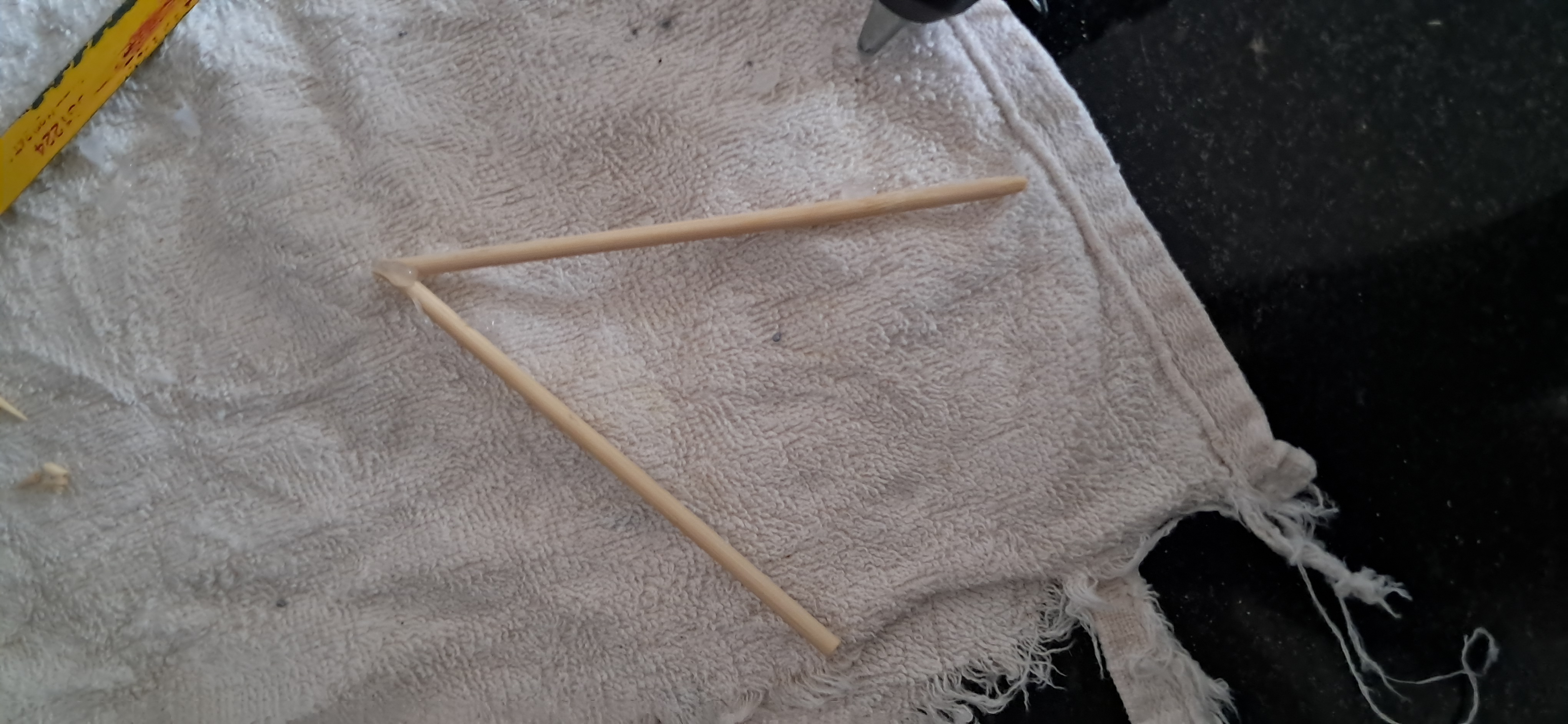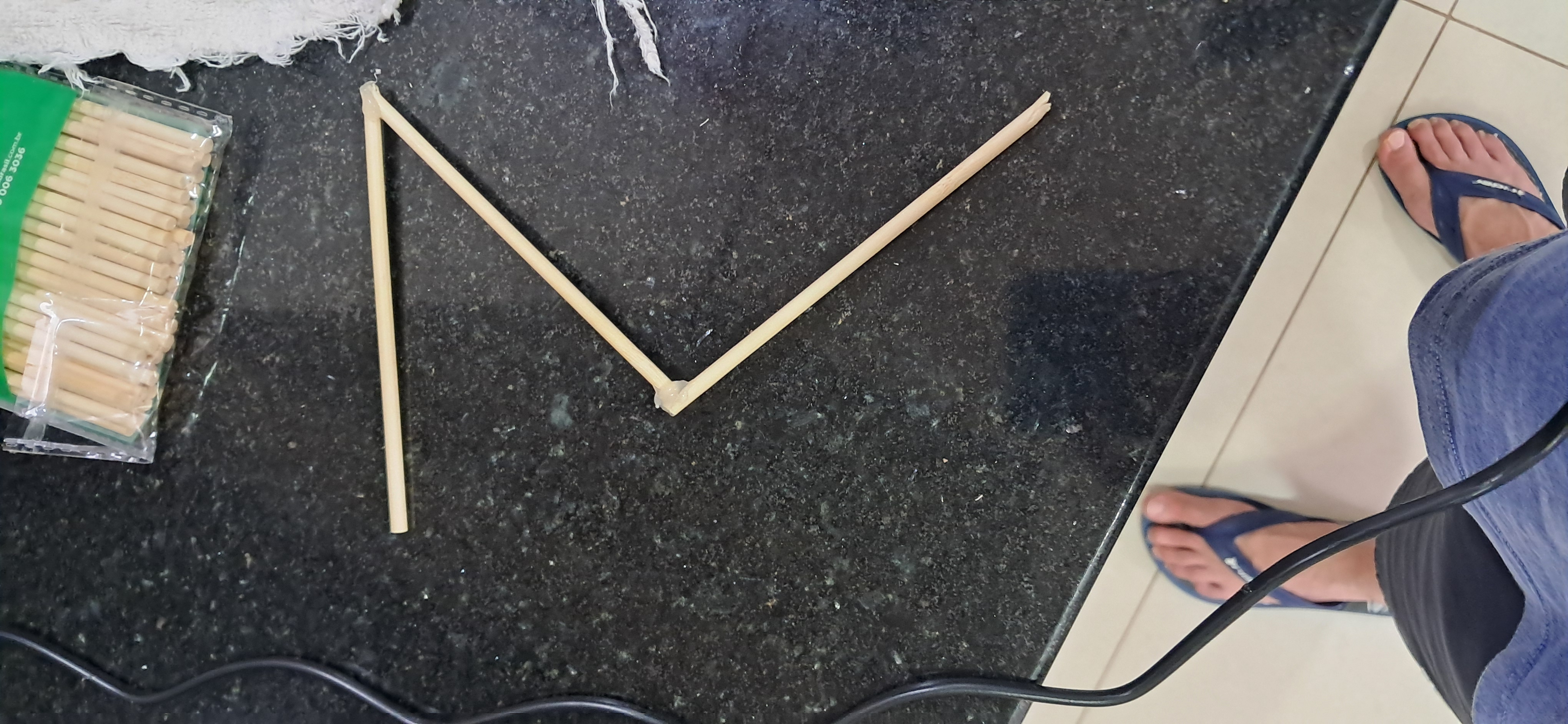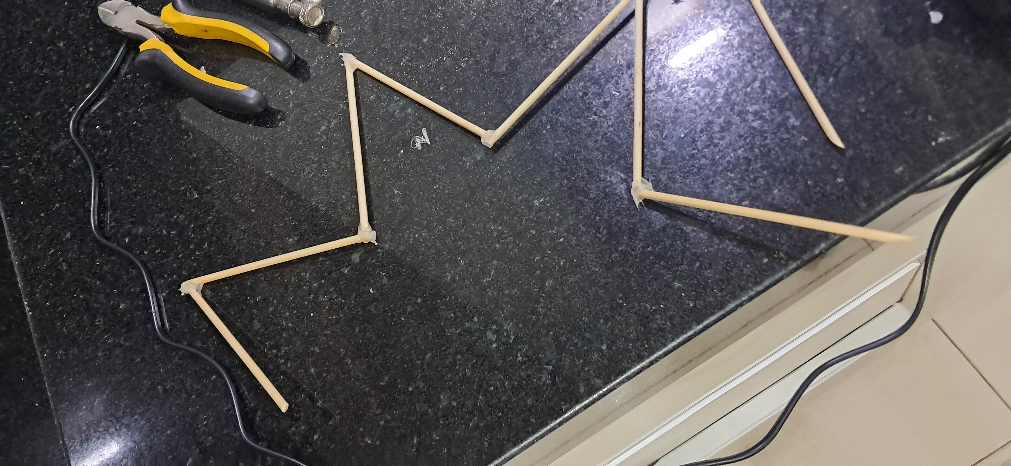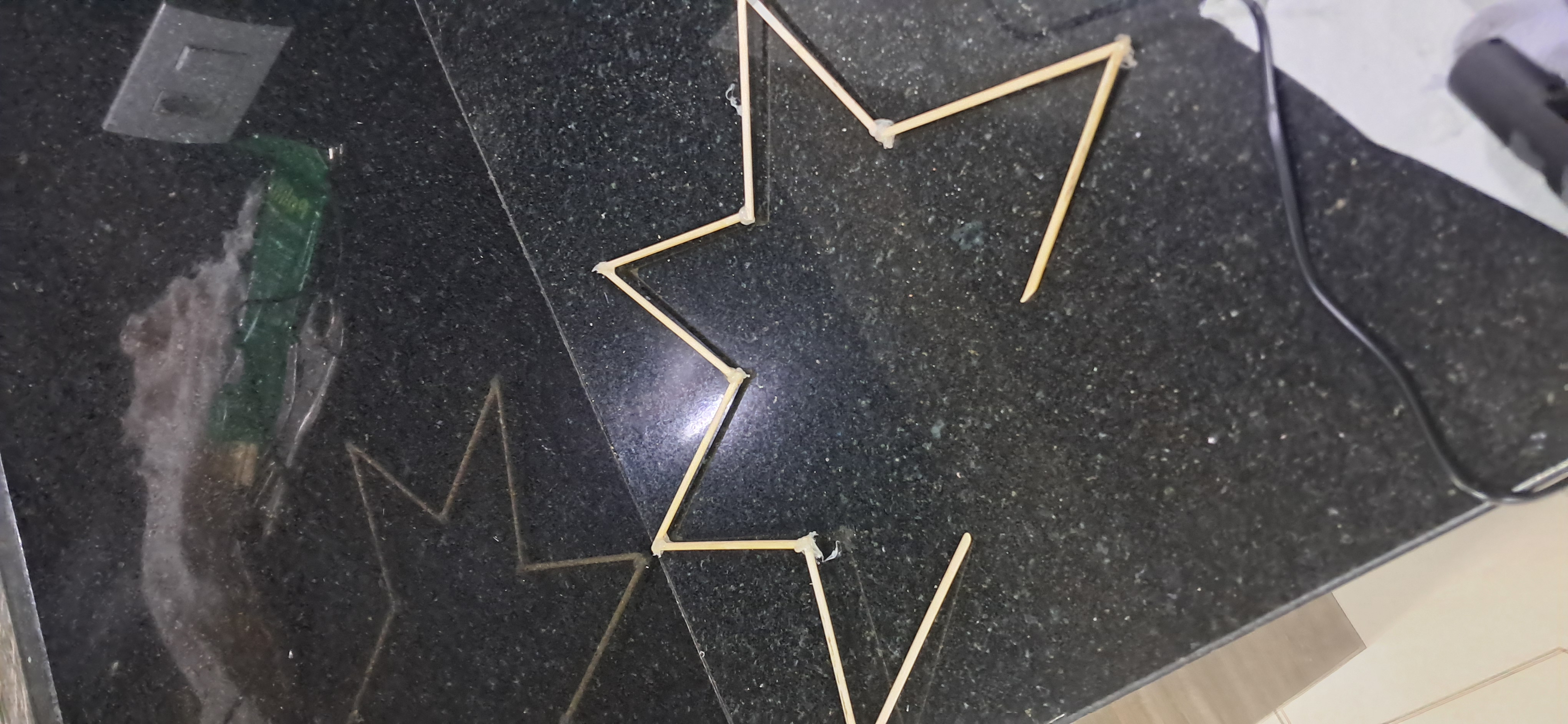 Uma estrela natalina para decoração feita de palitos de churrasco.