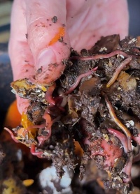 Pegue um punhado de minhocas e coloque sobre a cama com serragem. Cubra levemente com mais serragem/papelão para proteger do sol e estimular a alimentação.