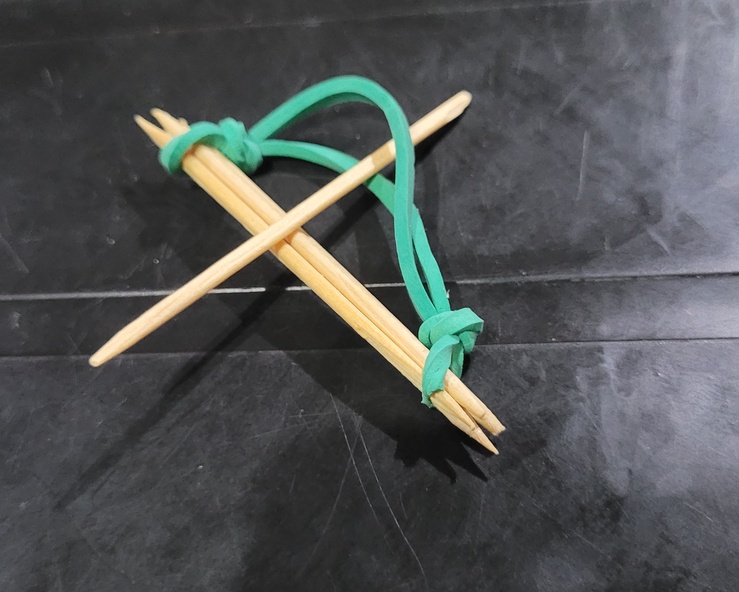 Dê dois nós na argola e prenda 3-4 palitos de dente