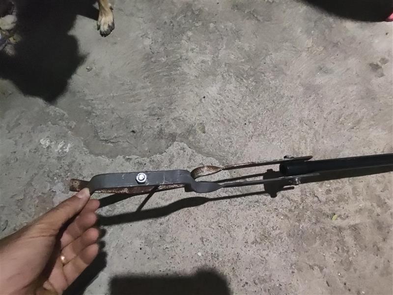 Este dispositivo é de uma grande ajuda na construção civil, pois elimina enormemente o esforço para bater concreto. É bem simples e usa o próprio eixo extensor da máquina, parafusando dois suportes de calha de telha galvanizada no furo do eixo extensor. Estes suportes ficam fixados em forma de batedeira e funciona muito bem na prática.