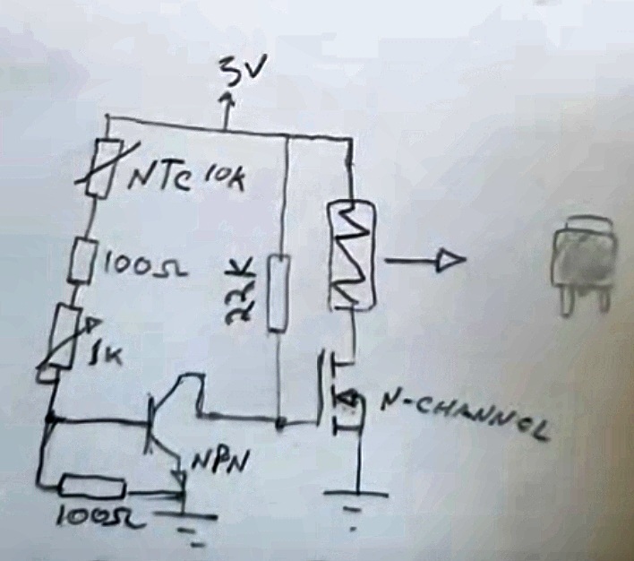 Utilizando um resistor NTC (que varia negativamente ao aumento de temperatura), o elemento resistivo é um regulador de tensão, o que está ligado de forma errada, no qual tem que testar varias combinações até atingir o consumo de corrente desejado, já que tive combinações que consumia apenas 700mA, e outros (reguladores) que consumiam 3.2A!