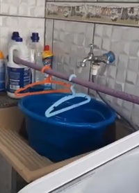 - - Pegue a bacia e coloque água, depois coloque em um local onde possa colocar o suporte por cima