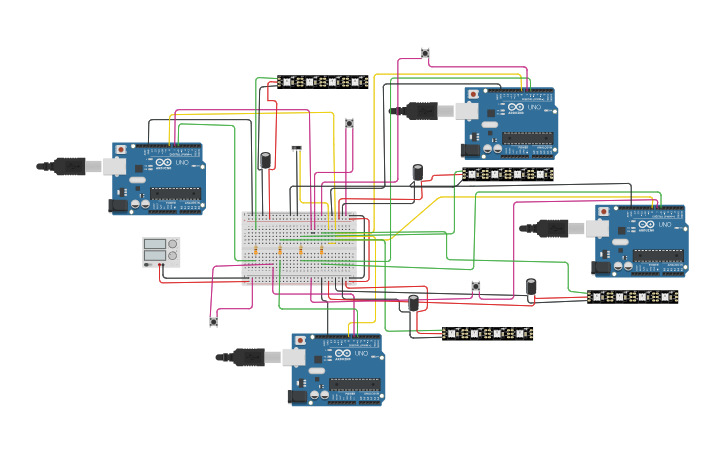 O controle é feito por Arduino, com divisões estratégicas da fita em grupos de alimentação para evitar perda de brilho e garantir acionamento confiável dos segmentos.