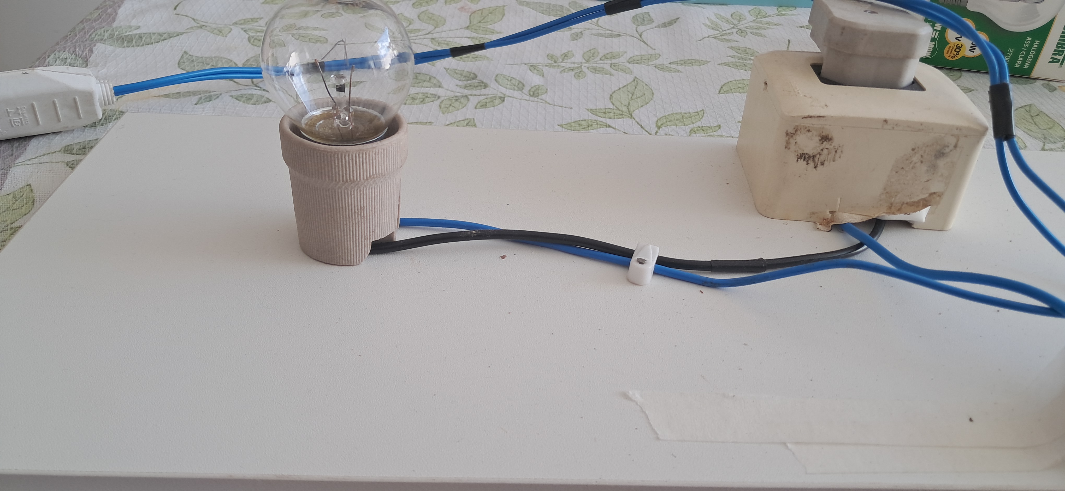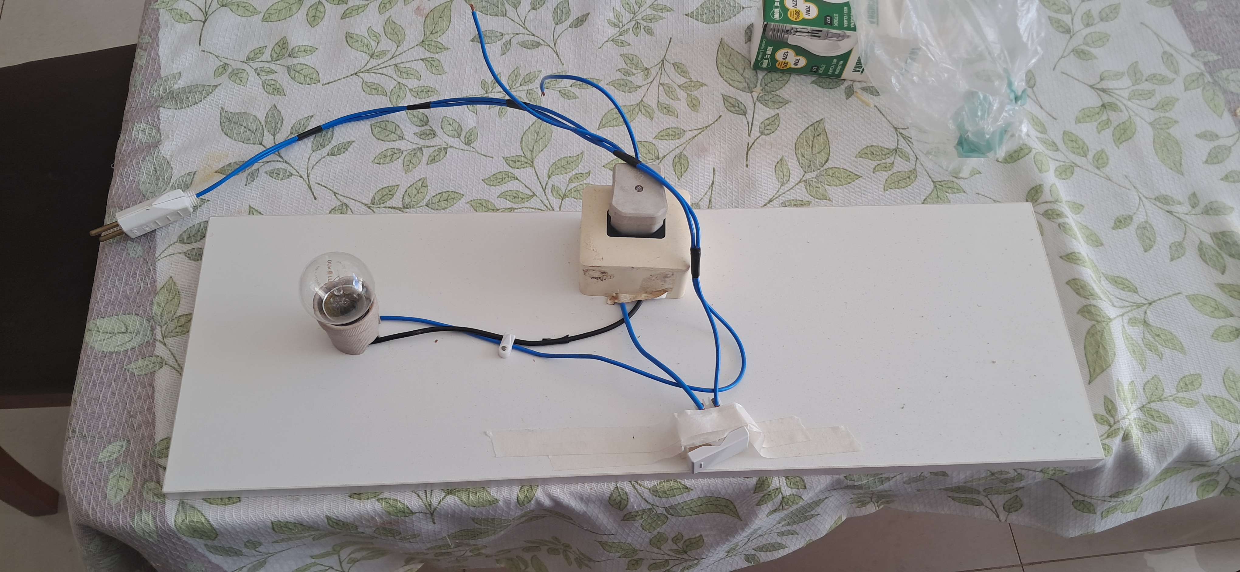 Prenda o soquete, as tomadas, o interruptor e os fios (siga a imagem)