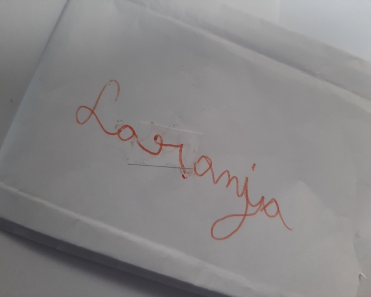 - Corte o papel mais ou menos no tamanho da parte da escrita que errou