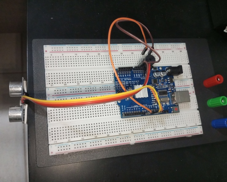 Basicamente e um buzzer passivo junto com um modulo ultrassónico (HC-SR04) que quando detecta algo, a 30cm de distancia emite um som de 2720hz no buzzer que diminui o tempo entre, os beeps quando a distancia diminui até 5 cm que trava emitindo um som continuamente por 10 segundos ai depois para e começa a leitura novamente